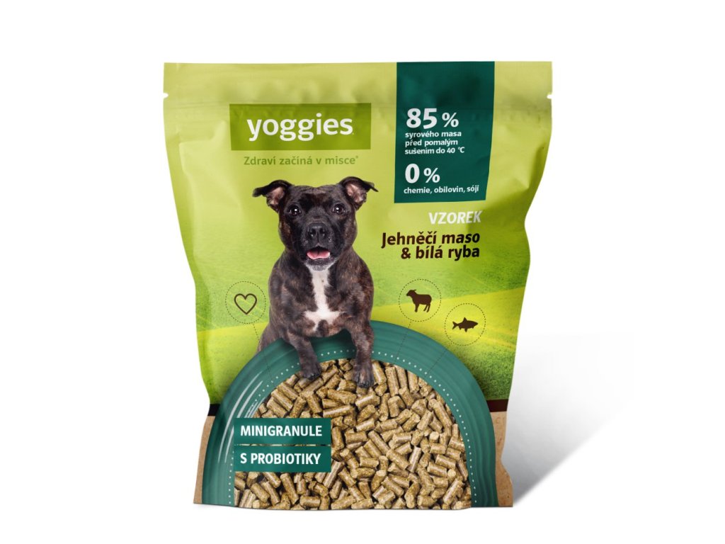 90g Yoggies Vzorek jehněčí maso&bílá ryba, minigranule lisované za studena s probiotiky