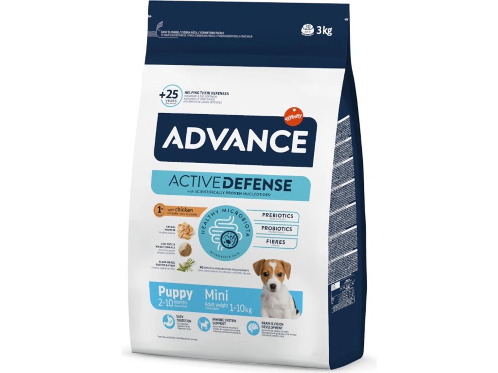 Je také nezbytné, aby se správně vyvíjel jejich imunitní systém a kosti. Granule Advance Mini Puppy s kuřecím masem jsou kompletním krmivem, které pokrývá potřeby rostoucích štěňat malých plemen. Obsahují specifické složky a živiny, vitamíny a minerály, které přispívají ke správnému vývoji a fungování imunitního systému, močového systému, trávicího systému a kardiovaskulárního systému. Optimální poměr vápníku a fosforu podporuje zdravý vývoj kostí a kloubů. Granule Advance Mini Puppy s kuřecím masem jsou obzvláště bohaté na omega-3 mastné kyseliny, které přispívají ke zdravému vývoji zraku a centrální nervové soustavy štěněte. Tyto granule obsahují čerstvé maso, které dodává nezbytné bílkoviny. Vysoký obsah bílkovin a tuků je ideální pro uspokojení vysokých energetických nároků štěňat a podporu růstu svalové hmoty. Tvar a velikost těchto kroket byly přizpůsobeny chrupu štěňat malých plemen. Tyto krokety neobsahují žádná umělá barviva ani konzervační látky