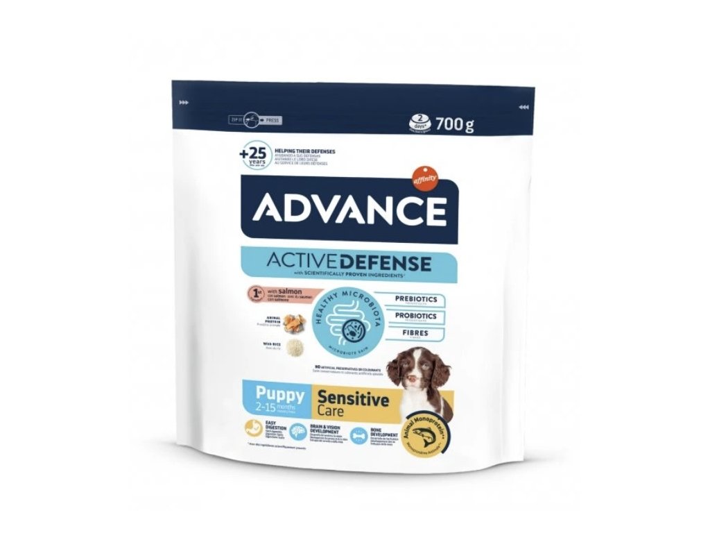 Krmivo Advance Puppy Sensitive Care je speciálně určeno pro podporu trávení vašeho štěněte. Vyrobeno z lososa jako jediného zdroje živočišných bílkovin a s rýží pro živočišnou monoproteinovou recepturu, která je snadno stravitelná. Složení bez přísad, které obsahují lepek, sóju nebo vejce. Přispívá také ke zdravé kůži a lesklé srsti díky omega 3 a omega 6 mastným kyselinám.