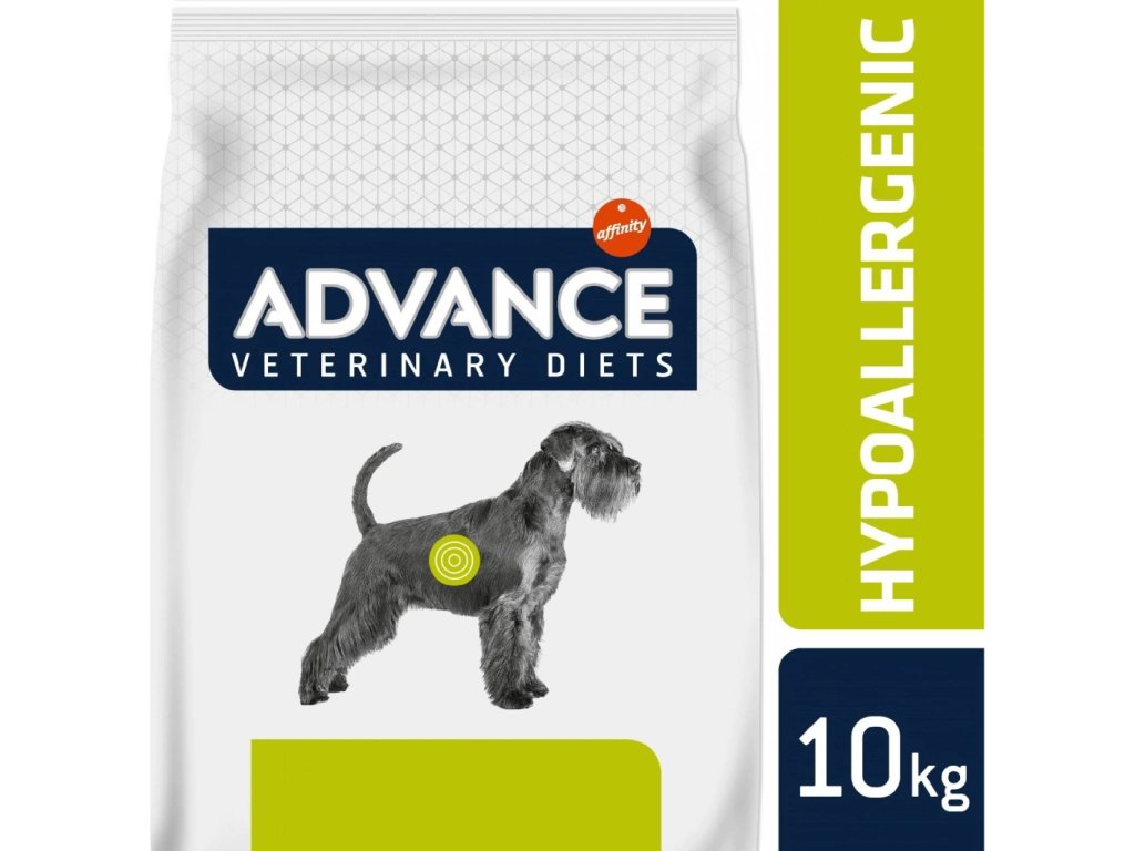 ADVANCE VETERINARY DIETS - Hypoallergenic je kompletní dietní produkt pro štěňata a dospělé psy, doporučený ke snížení nesnášenlivosti na přísady a živiny v potravě. Obsahuje jediný zdroj bílkovin a jediný zdroj uhlohydrátů. Formulovaný s hydrolyzovaným sójovým proteinem s velmi nízkou molekulovou hmotností jako jediným zdrojem bílkovin a čištěným škrobem jako jediným zdrojem uhlohydrátů. Navíc díky svému hypoalergennímu potahu má vynikající chuť.