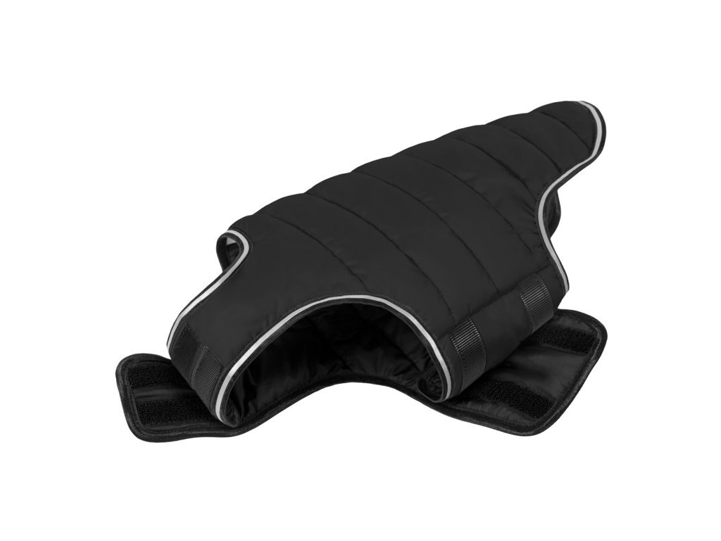 Vesta nepokrývá celou délku pejska a je řešená tak, aby chránila tělesné jádro pejska a udržela ho v suchu a teple bez omezení pohybu.