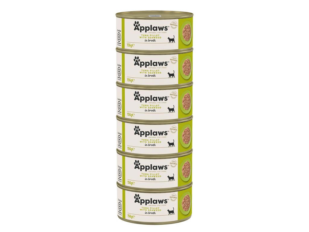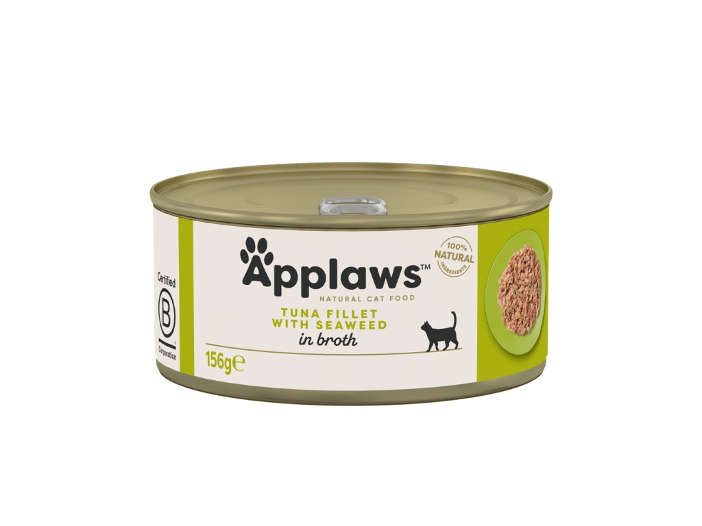 Zvýhodněné balení 6x156g. Applaws konzerva Cat TUŇÁK A MOŘSKÉ ŘASY je doplňkové krmivo pro dospělé kočky. Mořská řasa obsahuje velké množství důležitých látek. Dopřejte svým kočkám vitamínovo-minerální bombu! 100 % přírodní krmivo bez umělých konzervačních látek, barviv nebo dochucovadel.Applaws konzervy pro kočky obsahují pouze z kvalitní a přírodní suroviny. Použité kuřecí maso pochází z chovů, v nichž jsou kuřata krmena přirozeně a nejsou do krmiva přidávány hormony. Ryby, jejichž maso je použito v krmivu, byly loveny ve volné přírodě.