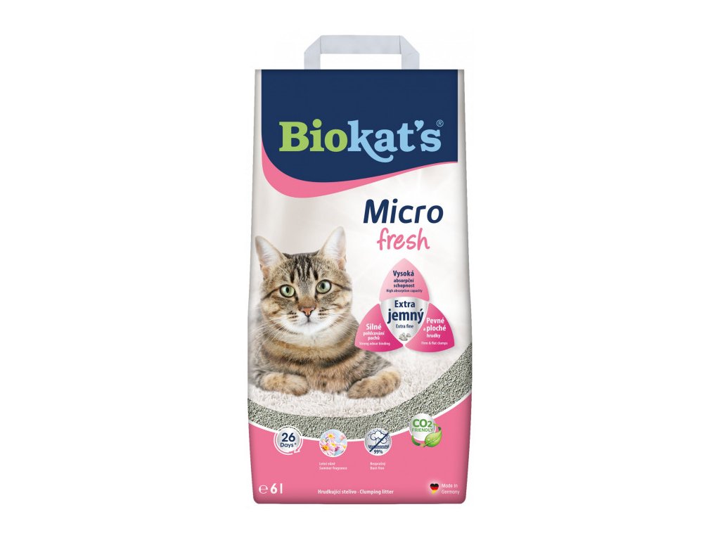 Podestýlka pro kočky od značky Biokat’s má absorbční schopnost až 300 %. Tvoří velice pevné hrudky, a proto můžete tohoto steliva používat méně, než je tomu u běžných podestýlek. Biokat´s Micro Fresh z vysoce kvalitního přírodního jílu potěší hygieničností, bezprašností a účinným pohlcováním pachů. Materiál Biokat´s Micro Fresh pochází z povrchových dolů a během jeho těžby nebyla narušena rovnováha flóry a fauny. Extra jemná pro kočičí tlapičky s příjemnou vůní léta.