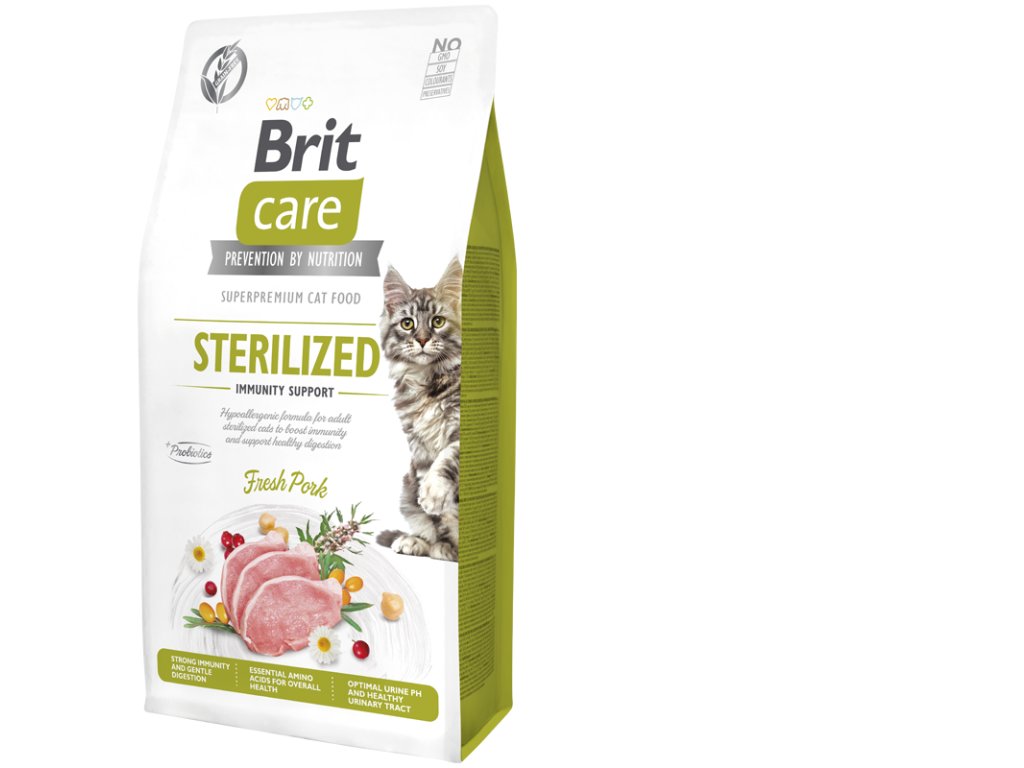 Sterilized (Immunity Support) - hypoalergenní receptura pro dospělé kastrované kočky s citlivým zažíváním. Superprémiová krmiva pro kočky Brit Care jsou jedničkou na trhu.