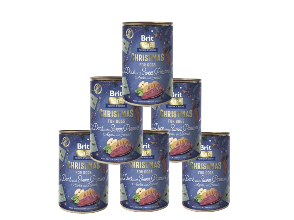 Kompletní krmivo Brit Mono Protein je určeno pro dospělé psy. Jedná se o vyváženou stravu pro milovníky masa a zároveň o recepturu s obsahem jednoho živočišného proteinu, což je vhodné ke snížení rizika alergií a potravinové intolerance. Konzervy pro psy Brit Care Christmas Duck & Sweet Potatoes obsahují kachní maso v kombinaci s batáty, jablky a špenátem.