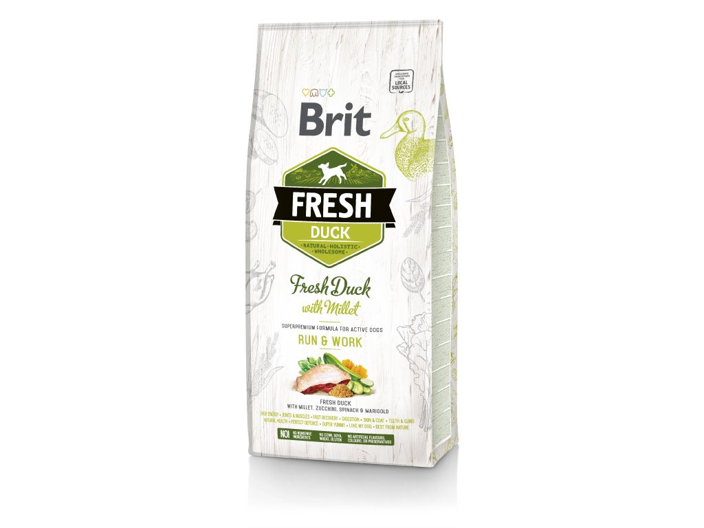 Brit Fresh Dog Duck & Millet Active Run & Work 12kg - poškozený obal