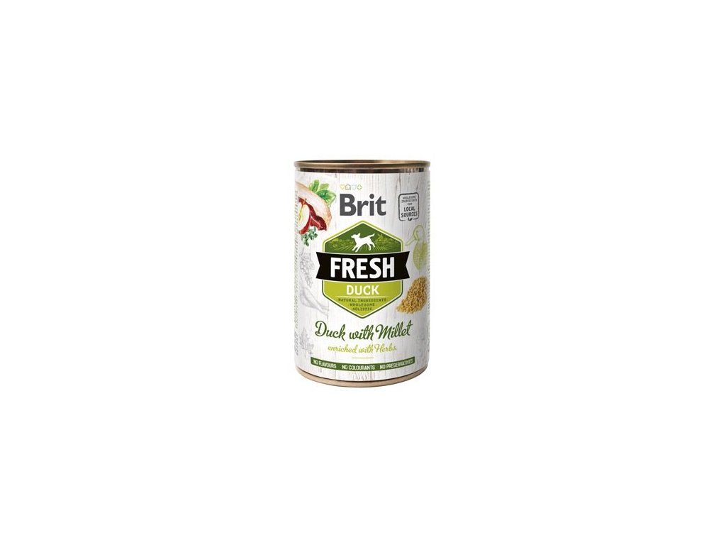 Brit Fresh Dog konz Duck with Millet 400g poškozený obal