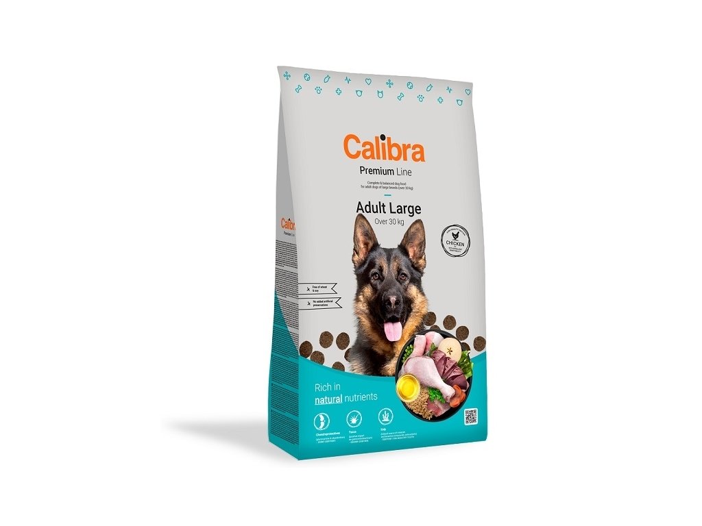 Kompletní krmivo Calibra Dog Premium Line Adult Large s vysokým obsahem kuřecího masa pro všechny dospělé psy velkých plemen nad 30 kg. Receptura nabízí vyvážený poměr všech potřebných živin, minerálů, vitamínů a stopových prvků pro zdravý a spokojený život pejska. Bez pšenice a pšeničného lepku.