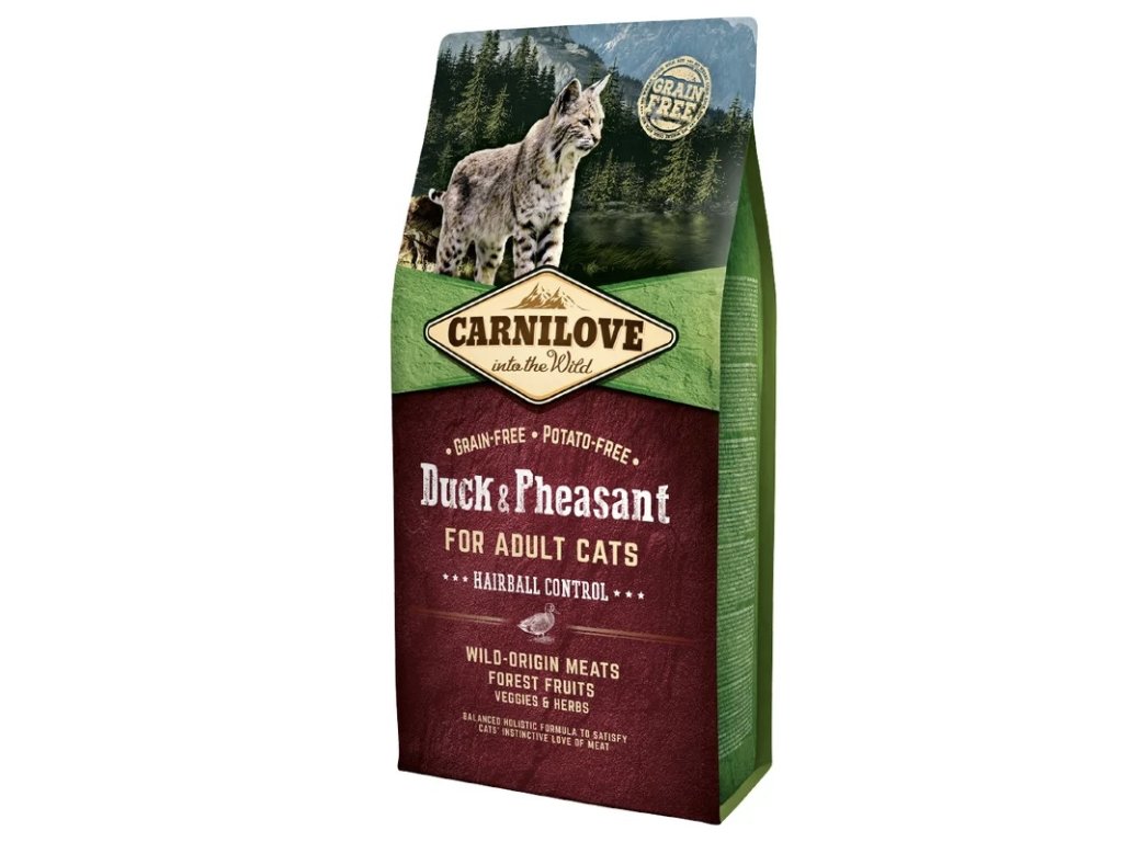 Hlavní složkou tohoto krmiva bez obilovin je lahodná kachna a bažant, které jsou bohaté na vysoce kvalitní bílkoviny. Bílkoviny jsou důležité pro podporu svalstva. Obsažené ovoce a zelenina dodávají vaší kočce spoustu vitamínů a antioxidantů, které mimo jiné podporují imunitní systém. Krmivo Carnilove Cat Hairball Control Duck & Pheasant obsahuje velké množství vlákniny, která podporuje funkci trávicího traktu.