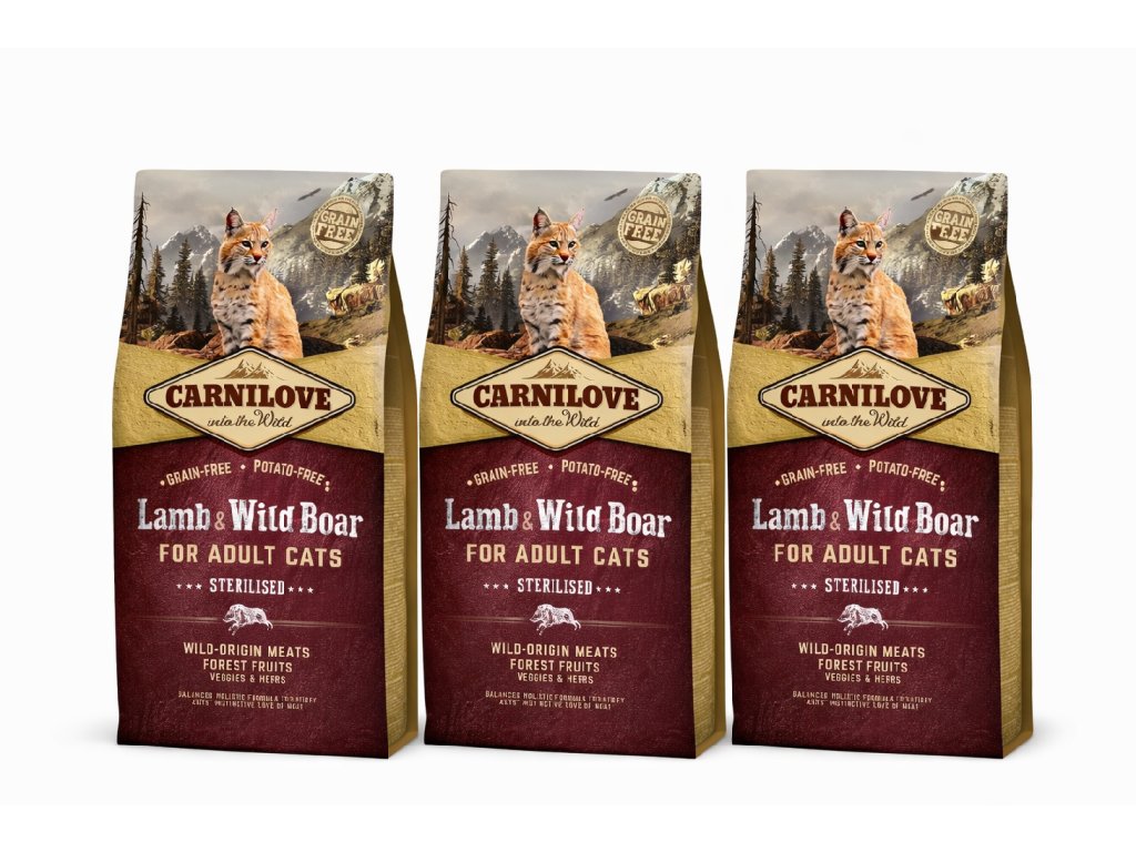 3xCarnilove Cat Lamb & Wild Boar Adult Sterilised 6kg + BOX za 599,-