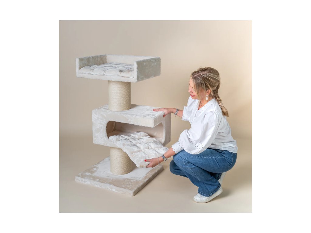 Objevte dokonalé útočiště pro svého mainského mývala nebo ragdolla v působivém zařízení Maine Coon Lounge Retreat! Toto škrabadlo, speciálně navržené se všemi funkcemi, které vaše milovaná kočka potřebuje k zábavě a odpočinku, poskytuje prostor až pro 2 až 3 velké kočky (plemene).