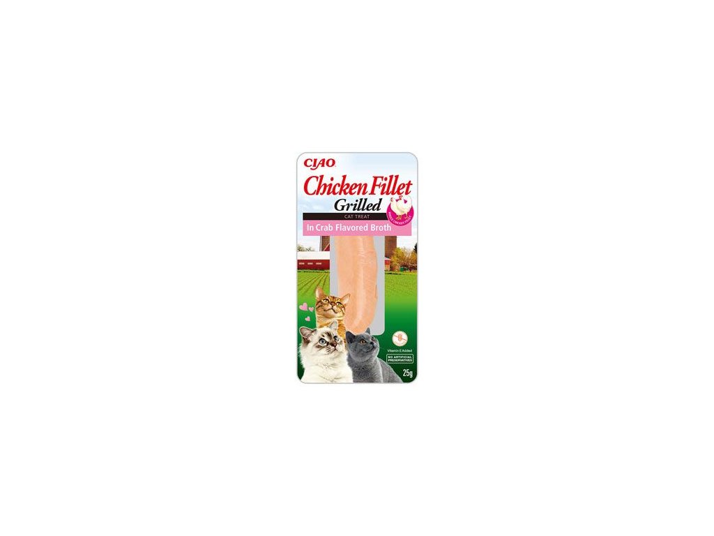 100% kuřecí filátko v poctivém vývaru z krabího masa. Šťavnatý grilovaný filet z farmářského kuřete pro gurmánský zážitek. Neodolatelná chuť a vůně poctivého masa. Křehké filátko potěší vaší kočičku jako pamlsek nebo jako doplněk běžné krmné dávky. Lahodný vývar skvěle ochutí jakékoliv granule a pomůže zvýšit chuť k jídlu. Nízký obsah kalorií. Bez obilovin, bez obsahu umělých barviv, bez chemických dochucovadel a bez aromat. Kočičí grain free pochoutka Chicken Fillet je navíc obohacena o 100% přírodní extrakt ze zeleného čaje.