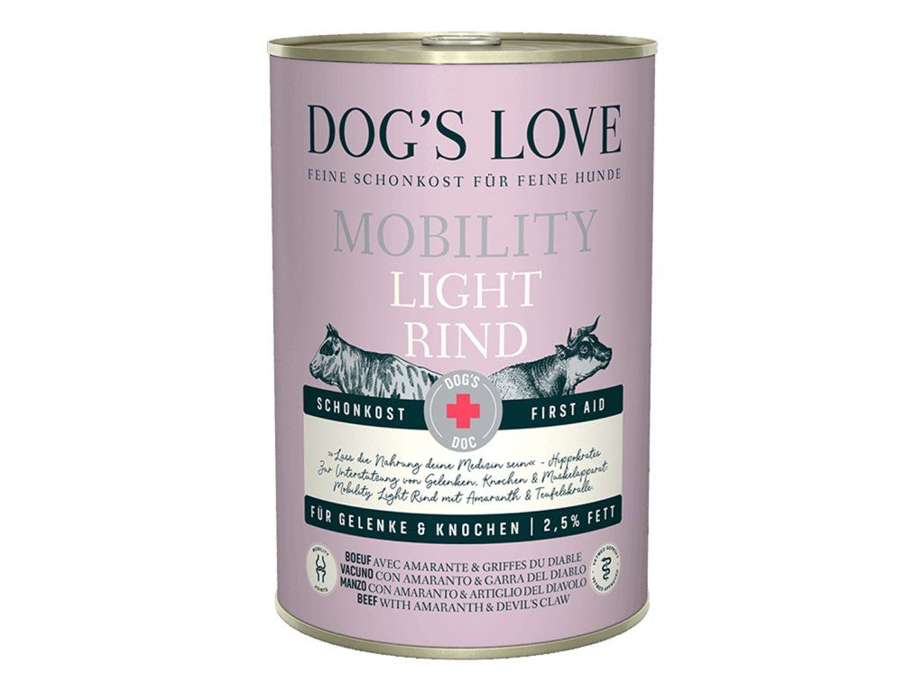 Řada konzerv Dog's Love DOC je určena pro speciální potřeby psů na výživu. Bezobilné kompletní konzervované krmivo pro dospělé psy všech plemen z hovězího masa a hovězích vnitřností DOC Light Mobility je koncipováno jako nízkotučná dietní strava pro podporu kloubů a kostí.