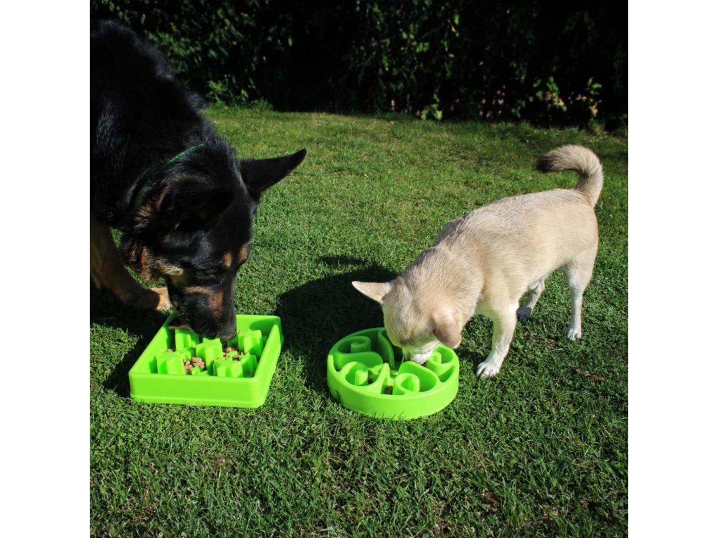 Účelem zpomalovacích misek je snížit hltání a následné nadýmání, snížit riziko torze (přetočení) žaludku a jiných trávicích obtíží, zabavit psa, poskytnout psovi větší pocit sytosti.