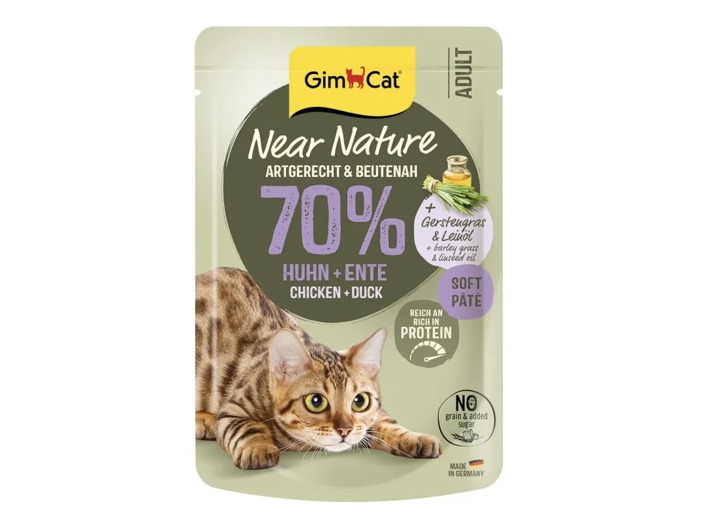 GimCat Near Nature 85 g neobsahuje žádný přidaný cukr a používá vysoce kvalitní suroviny, které poskytují chutnou a plnohodnotnou stravu. Vlhké krmivo také poskytuje životně důležitý taurin pro přirozený zrak a vaječné skořápky jako cenný zdroj vápníku pro normální stav kostí.
