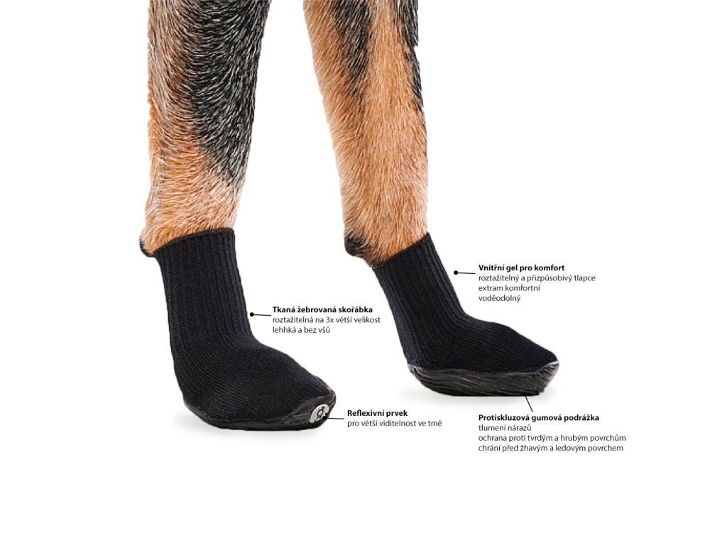 - chrání psí tlapky před rozpáleným chodníkem, kamínky, solí nebo zledovatělým povrchům