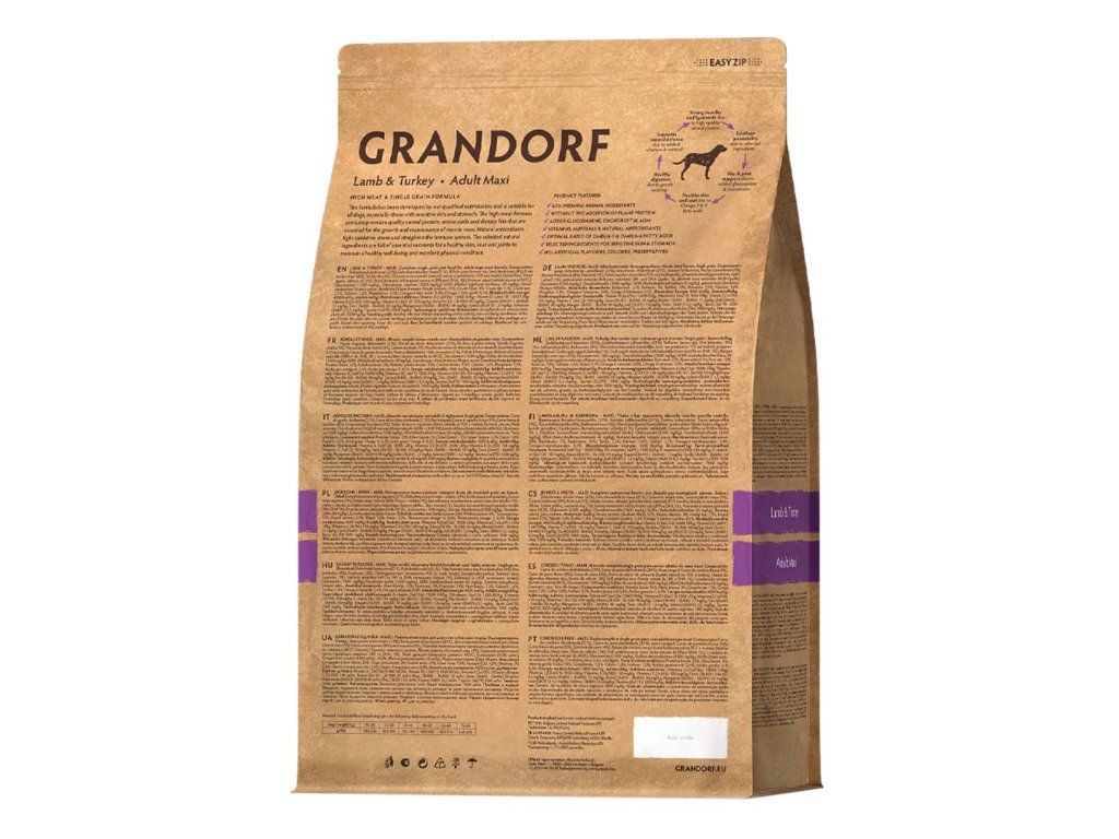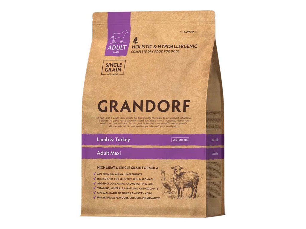 Díky vyvážené receptuře, hypoalergenním složkám, jednozrnnému a bezlepkovému složení má krmivo Grandorf Adult Maxi Jehně a krocan vynikající stravitelnost, vysokou nutriční hodnotu a pomáhá vašemu mazlíčkovi zůstat zdravý a veselý po mnoho let.