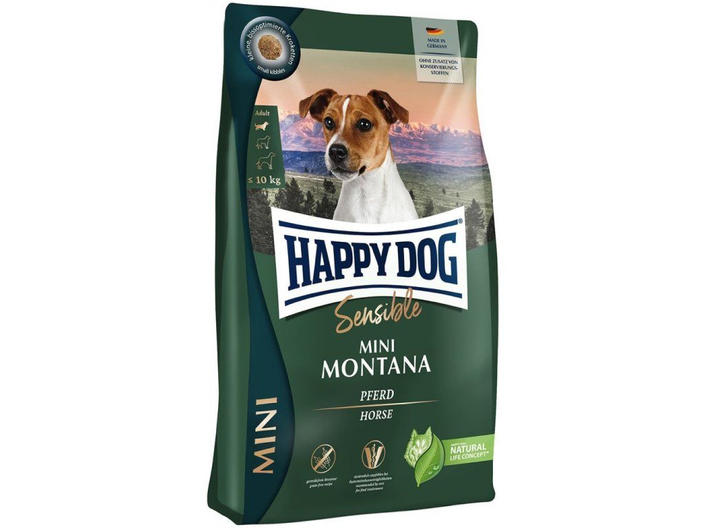 MINI MONTANA - výjimečně chutné SUPER PREMIUM kompletní krmivo Happy Dog Mini Montana je složeno z jemných a exkluzivních surovin jako je vydatné koňské maso a brambory. Proto je toto suché krmivo ideální potravou nejen pro všechny psí labužníky, ale také pro náročné pejsky malých plemen s citlivým trávením. Koňské maso je vzácný a ojedinělý zdroj proteinů a je proto ideální pro pejsky s potravní nesnášenlivostí nebo s potravní alergií. Brambory neobsahují žádný lepek a lze je proto nasadit u všech jedinců s nesnášenlivostí obilí. Tato bezobilná receptura je velmi lehce stravitelná a nabízí absolutní chuťový zážitek. S ní vyšlete svého pejska na opravdový labužnický výlet.