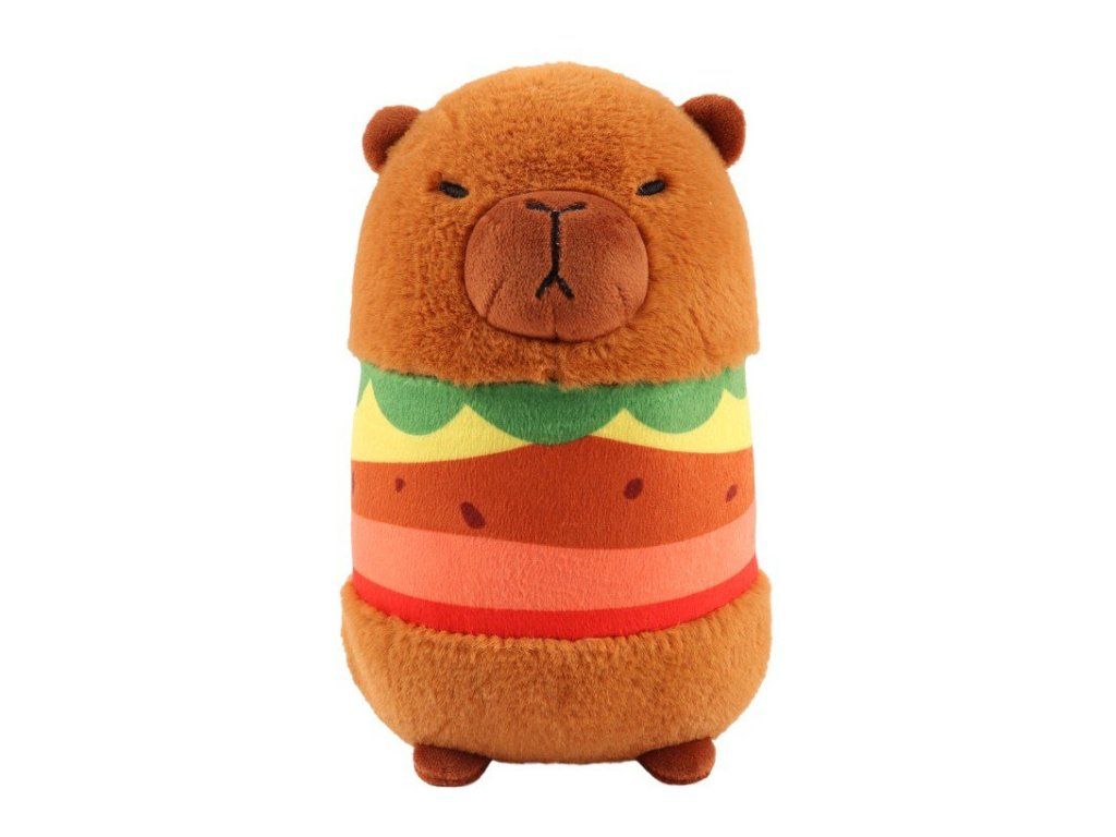 Hračka pro psa. Huhubamboo plyšová kapybara hamburger, rozměry hračky jsou 150x95x90mm