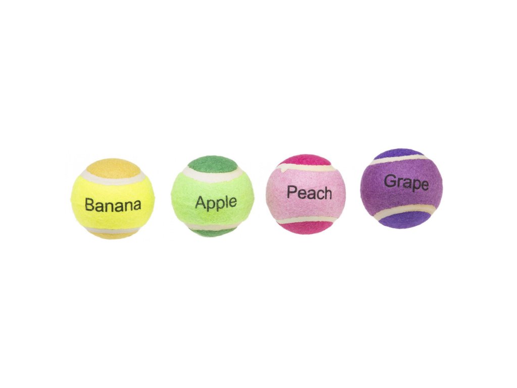 Různobarevné odolné tenisové míčky s vůní ovoce jsou originální hračkou pro psy všech velikostí a plemen. Lze je využít jako klasické míčky na aportování a hraní, ale třeba také na vyhledávání míčku po čichu nebo za účelem naučit psa rozlišovat různé vůně. Za pomoci voňavých míčků si můžete užívat společný čas s vaším čtyřnohým kamarádem tak, jak vás to dosud nenapadlo.
