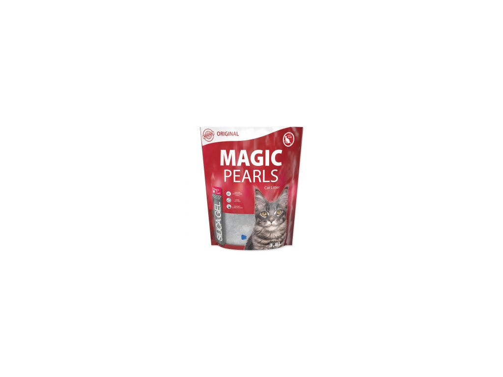Neparfémované silikátové stelivo pro kočky. Díky mikropórům na sebe stelivo velice rychle váže tekutiny, které uzamkne uvnitř krystalků a eliminuje nepříjemný zápach. Tím zároveň zabraňuje množení nebezpečných bakterií. Díky tomuto inovativnímu procesu má stelivo Magic Pearls extrémní savost a udržuje toaletu suchou a čistou. Stelivo Magic Pearls je bezprašné a neulpívá na tlapkách a srsti zvířat, takže není kočkami vynášeno mimo toaletu. Stelivo je vhodné i pro dlouhosrstá plemena koček. Stelivo Magic Pearls v toaletě vydrží absorbovat pachy a vlhkost až 4 týdny (při použití jednou kočkou), proto je jeho použití také velice ekonomické, není třeba jej měnit tak často jako jiné druhy steliv.