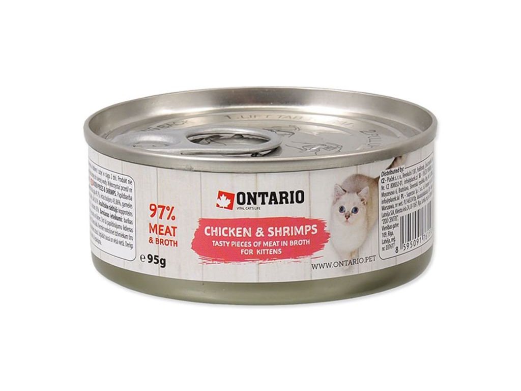Konzerva Ontario Kitten kuřecí kousky s krevetami 95g-pomačkané