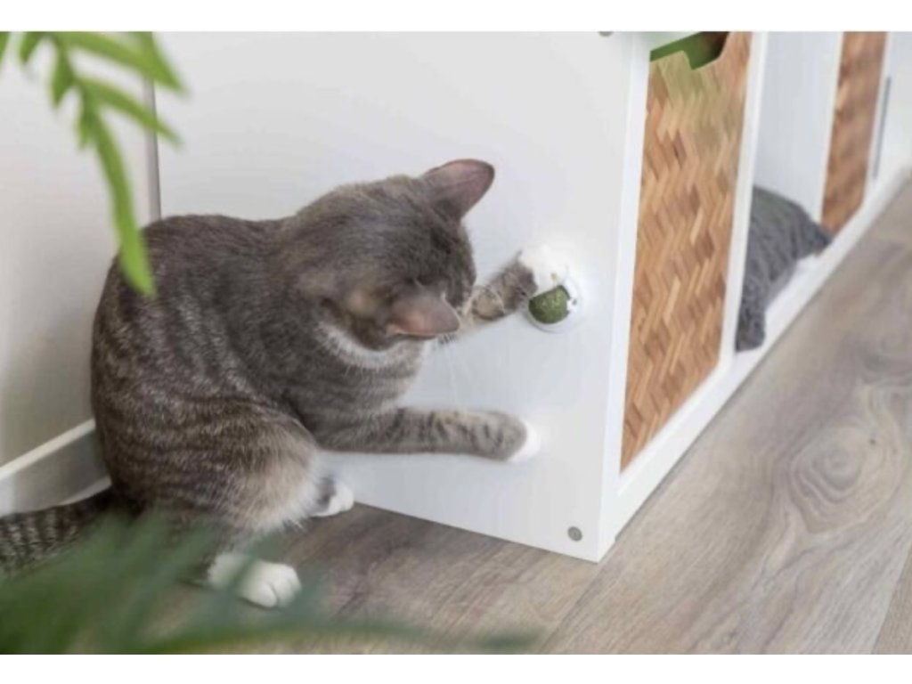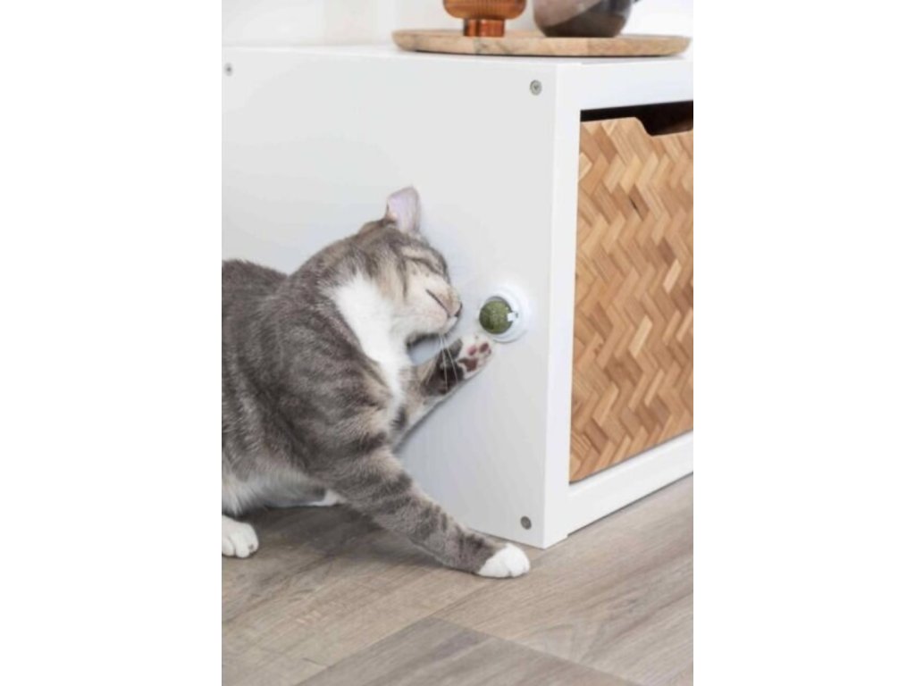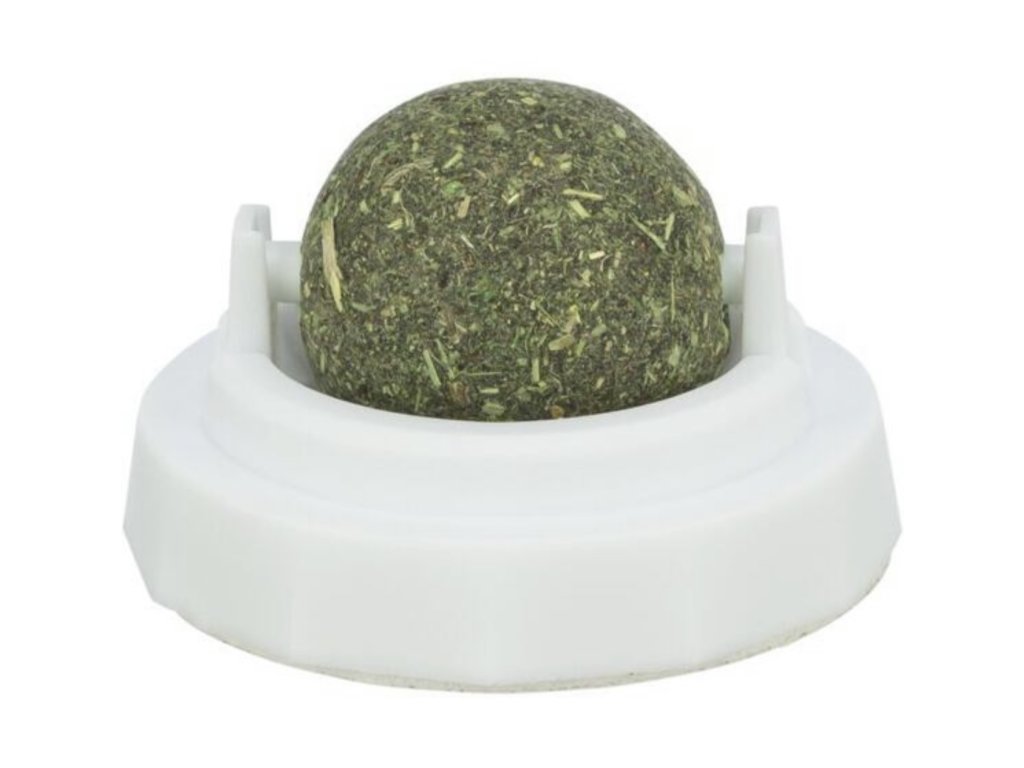 Kulička Catnipu v samolepícím držáku, 5 cm, bílá/zelená