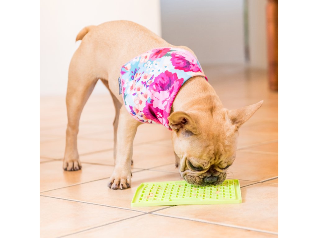 Rebel TIP: V parných letních dnech můžete LickiMat lízací podložku využít i jako ochlazující pomůcku. Do lízací podložky vetřete cokoliv, co má váš pes rád (nebo ji zalijte obyčejnou vodu či vývarem) a vložte do mrazáku. Po zmrazení má váš mazlík o chladivou zábavu postaráno! Olizuje a zároveň se ochlazuje.