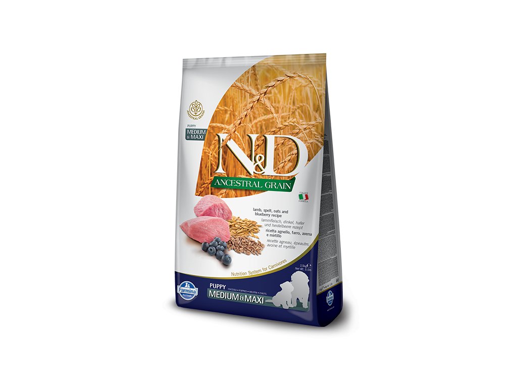N&D Ancestral Grain canine LAMB & BLUEBERRY PUPPY MEDIUM & MAXI 12 kg