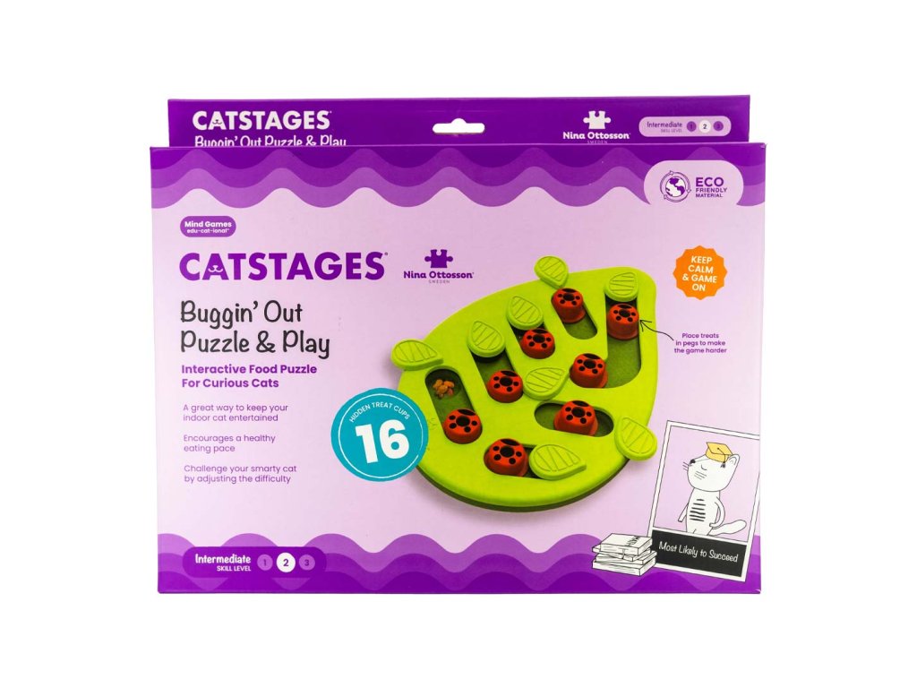 Pamlskový hlavolam vyrobený speciálně pro kočky na míru jejich přirozeným pohybům a loveckým instinktům.Hlavolam a zároveň interaktivní zábava pro zvídavé kočky, které rády mlsají, objevují a loví. Jednotlivé prvky hlavolamu podporují přirozené pohyby a instinkty koček při lovu.