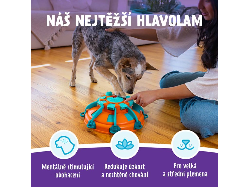 Hlavolamy od Niny Ottosson jsou vyvinuty tak, aby stimulovaly mozek vašeho psa. Naučte svého psího parťáka, jak hlavolam řešit, hrajte si a bavte se společně. Napovídání, chválení a opakované doplňování dobrot posílí váš společný vztah. Po celou dobu hry mějte pejska pod dozorem a nenechte ho hračku kousat. Do příští hry hlavolam schovejte.