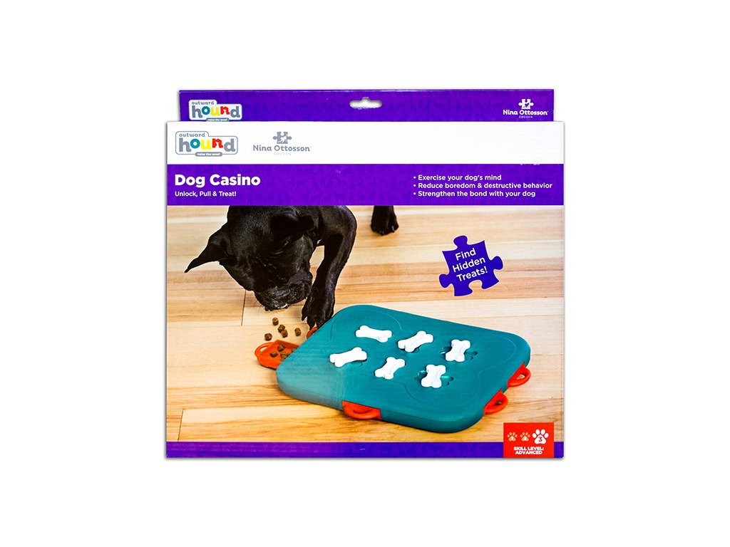 Hlavolam CASINO založen jen na prvcích, které se ze hry nevyndavají, proto pejsky přiměje přemýšlet mnohem více než u jiných jednodušších hlavolamů.