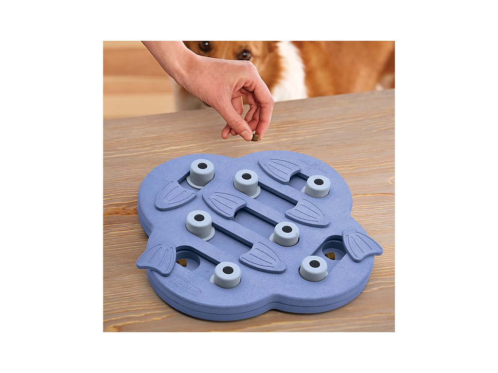 Hlavolamy od Niny Ottosson jsou vyvinuty tak, aby stimulovaly mozek vašeho psa. Naučte svého psího parťáka, jak hlavolam řešit, hrajte si a bavte se společně. Napovídání, chválení a opakované doplňování dobrot posílí váš společný vztah. Po celou dobu hry mějte pejska pod dozorem a nenechte ho hračku kousat. Do příští hry hlavolam schovejte.
