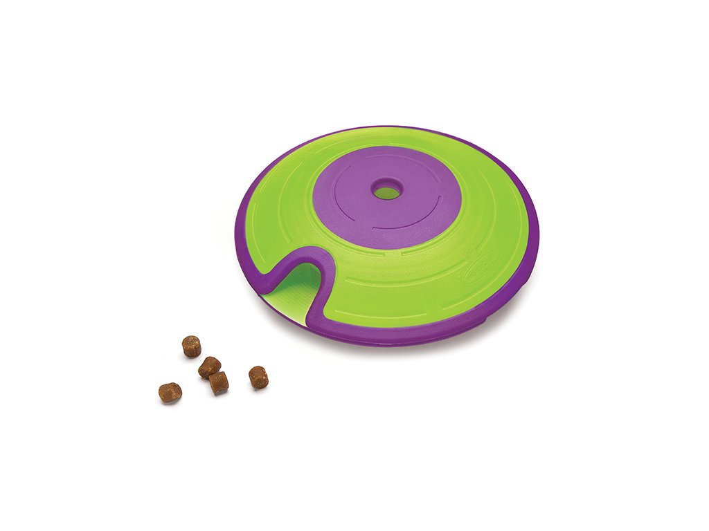 Tenhle hlavolam sype vašemu pejskovi pamlsky ze dvou stran. Vložte pamlsky do středových otvorů v hračce na obou stranách, lehce protřepejte, nemíchejte a nechte vašeho psího kamaráda, aby hračku otáčel a převracel tlapkami či čumáčkem. Až pamlsky projdou vnitřním labyrintem, vyskočí z bočních otvorů a pejska náležitě odmění!