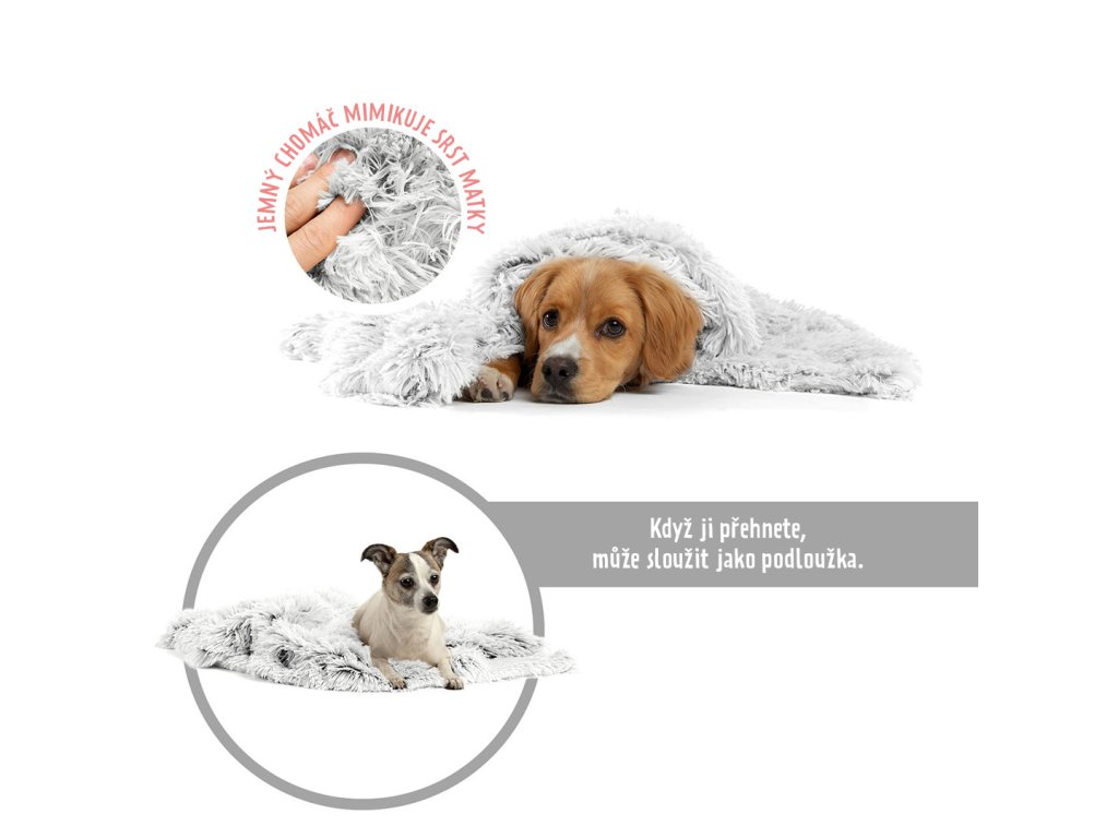 Klepe se váš mazlíček zimou a chce se zahřát? Přeložte deku tak, aby na jedné části ležel a druhou byl přikrytý, nebo ho dekou přikrejte na jeho pelíšku. Samozahřívací materiál rychle zahřeje i největšího zmrzlíka nebo naháče.