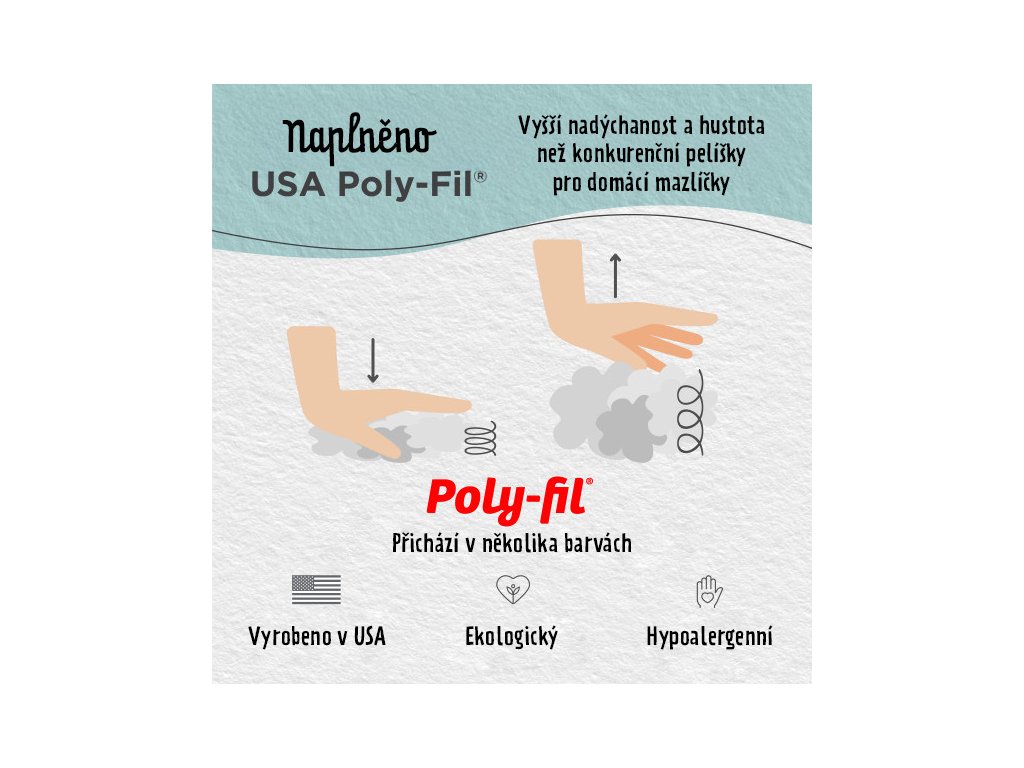 Vašim domácím mazlíčkům nabízí ideální místo na spaní, tulení a relaxaci. Díky vyvýšeným okrajům budou chráněni před chladným vzduchem, který se táhne při zemi. Vysoce pružná výplň Poly-Fil je měkčí a hustší, poskytuje fukńkční ortopedickou oporu kloubům, svalům a krku a zabraňuje vzniku otlaků, je ideální pro domácí mazlíčky všech věkových kategorií.