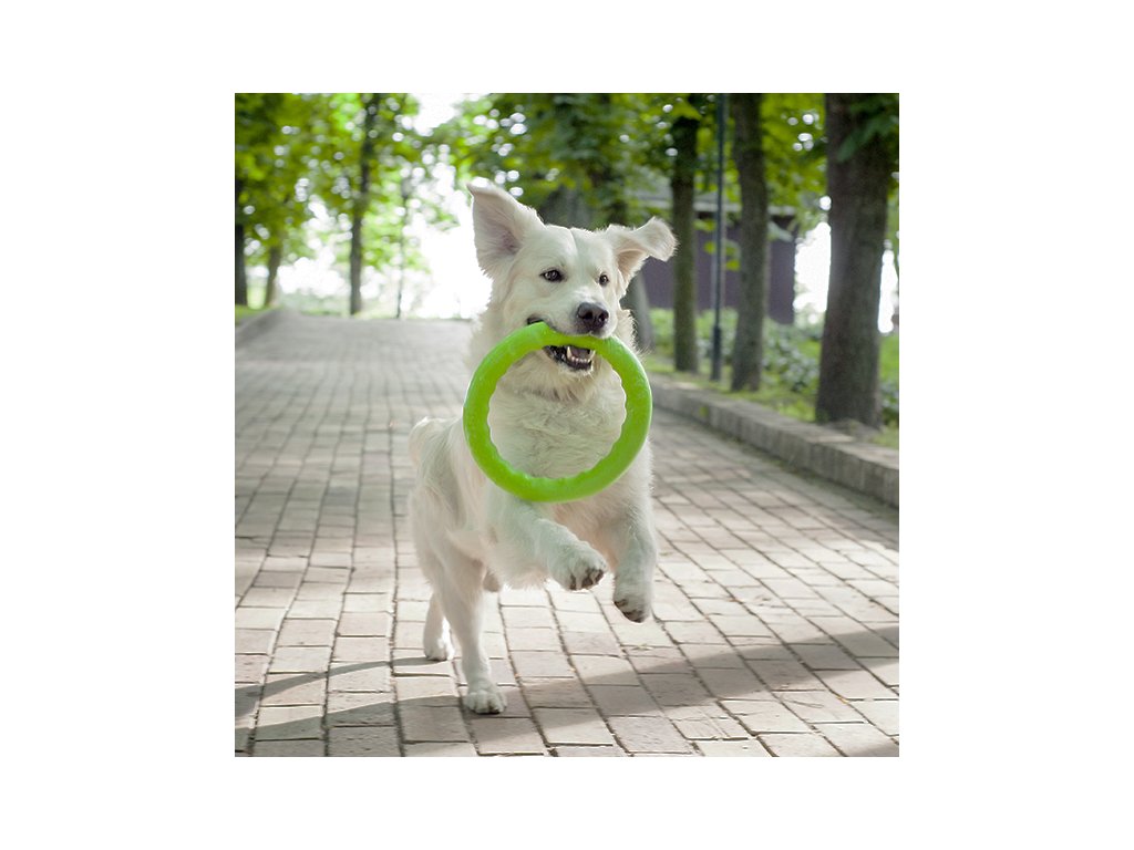 - kruh doďte tak, aby se kutálel, ne jako frisbee, pro psa bude kutálející se kruh více atraktivní a pohodlnější a zároveň bezpečnější pro uchopení v pohybu.