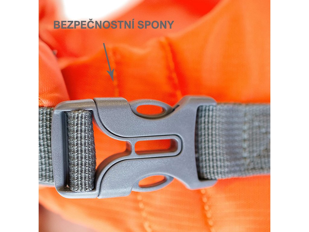 Plovací vestu Granby Splash nabízíme ve výrazné oranžové barvě v pěti velikostech - od XS pro toy plemena až po XL pro velká plemena.