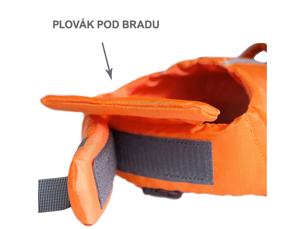 Granby Splash má malý plovák pod krk, který zamezuje šplouchání vody přímo do tlamičky a pomáhá udržet hlavu psa nad vodou. Díky tomu je skvělá pro začínající plavce, pejsky s větší hlavou nebo krátkolebá plemena. Tuto vychytávku ocení také zkušení vodáci.