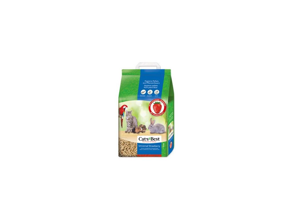 Cat's best Universal jahoda je víceúčelovou podestýlkou pro kočky, hlodavce, malá domácí zvířátka chovaná v kleci. Podestýlka je čistě přírodní produkt, který dobře pohlcuje zápach a zároveň má vysokou absorbční schopnost. Kompletně podléhá rozkladu. Jedná se o nehrudkující stelivo s jahodovou vůní.Má vynikající absorpční vlastnosti. Je vhodná pro kočky, štěňata, exotické ptactvo, hlodavce, terarijní zvířata a další zvířata chovaná v klecích a teráriích.