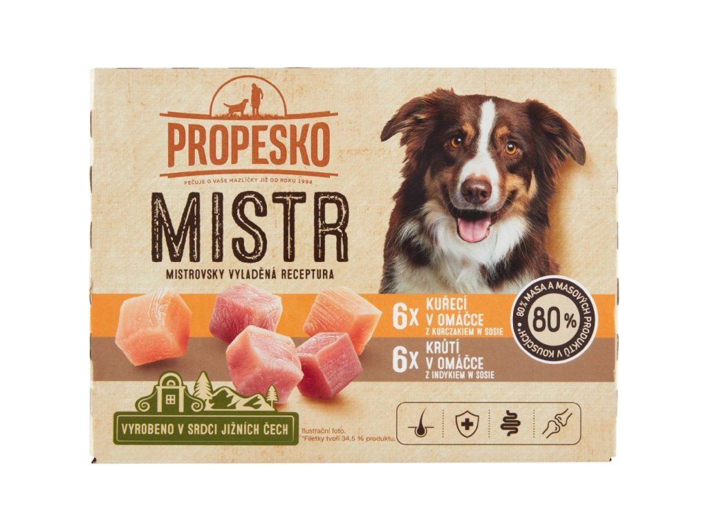 Propesko Mistr Adult filetky s kuřecím a krůtím v omáčce 12 x 85 g