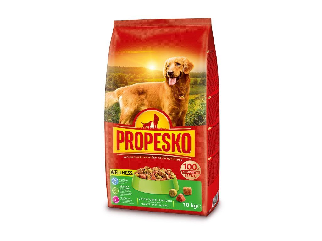 - Propesko Wellness je kompletní krmivo s příchutí jehněčího masa s rýží a zeleninou pro citlivá psí bříška