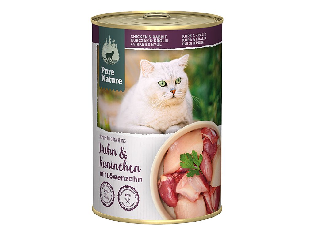 Pure Nature Cat Adult konzerva Kuře a Králík s pampeliškou 400g