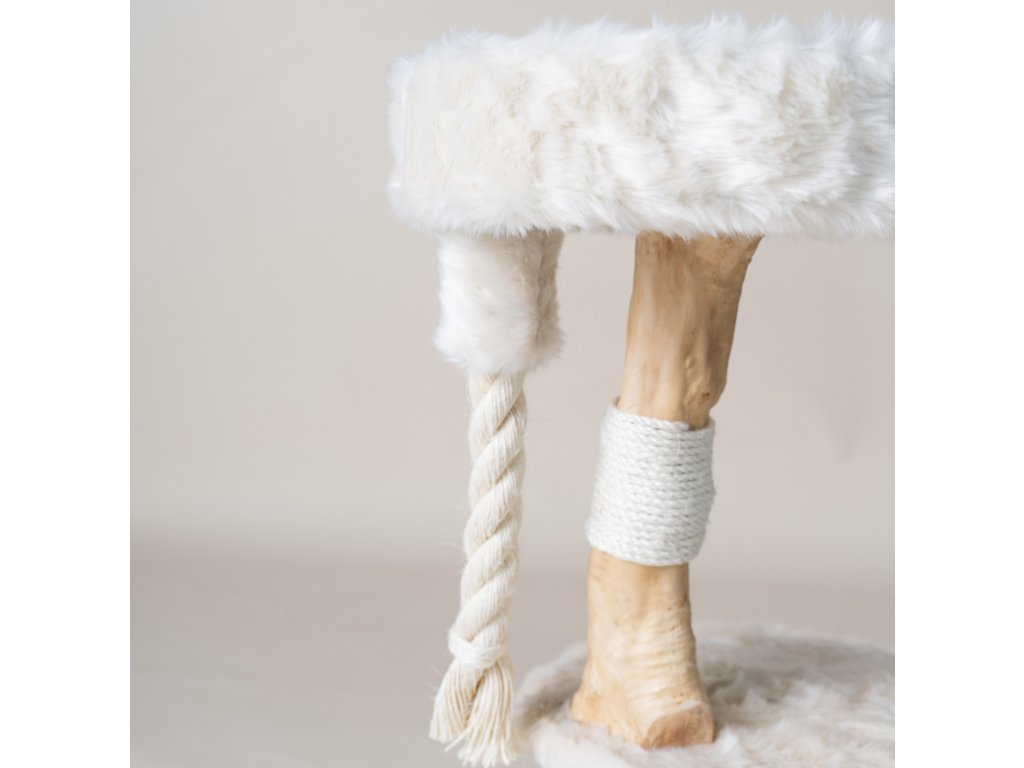 Kolem dřevěných sloupků je omotaný proužek sisalu, který poskytuje zábavu při škrábání, aby byly nehty dobře upravené. Je také ideální pro koťata a menší (rodokmenové) kočky mít v domě pěkné škrabadlo!