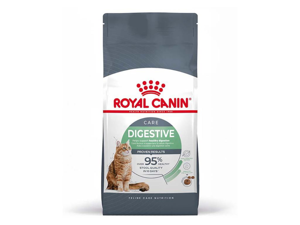 Royal Canin Digestive Care je kvalitní a vyvážené kompletní krmivo pro dospělé kočky podporující činnost trávicího traktu. Mnoho koček trpí zažívacími problémy, lehce stravitelné bílkoviny a směs prebiotik a vlákniny tak pozitivně ovlivňují činnost trávicího traktu a střevní mikroflóry. Prebotické fruktooligosacharidy navíc podporují tvorbu prospěšných bakterií ve střevech a zabraňují šíření bakterií patologických.