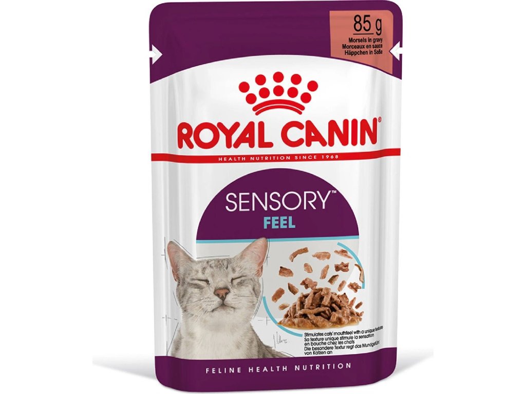 Unikátní vlhké krmivo pro kočky Royal Canin FHN Sensory Feel Gravy, které si zamiluje každý. Díky vysoké chutnosti a neodolatelné vůni je vhodné i pro ty nejvybíravější kočky. V kapsičce Feel jsou navíc přítomny unikátní textury, které stimulují receptory v kočičí tlamě. Krmivo podporuje vyváženější hydrataci kočičího organismu a správné fungování močového měchýře. Kapsičku je také možno přimíchat do suchého krmiva. Balení obsahuje 12 ks kapsiček po 85 g.