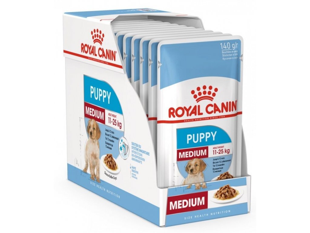 Krmivo ROYAL CANIN® Medium Puppy in Gravy je vytvořeno tak, aby uspokojovalo veškeré nutriční potřeby štěňat středních plemen do 12 měsíců, která budou mít v dospělosti váhu mezi 11 a 25 kg.