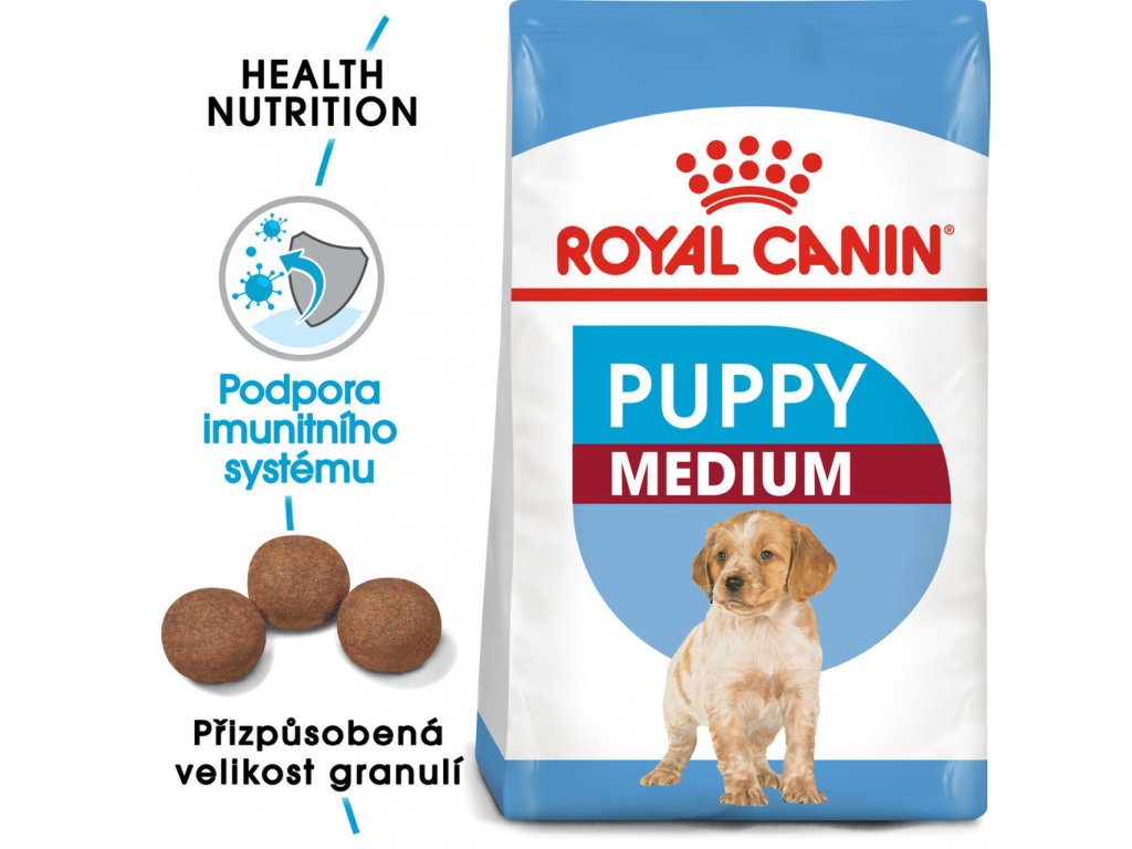 oyal Canin Medium Puppy je kompletní super prémiové krmivo pro štěňata (2 - 12 měsíců věku) středních plemen (11 - 25 kg váhy v dospělosti).