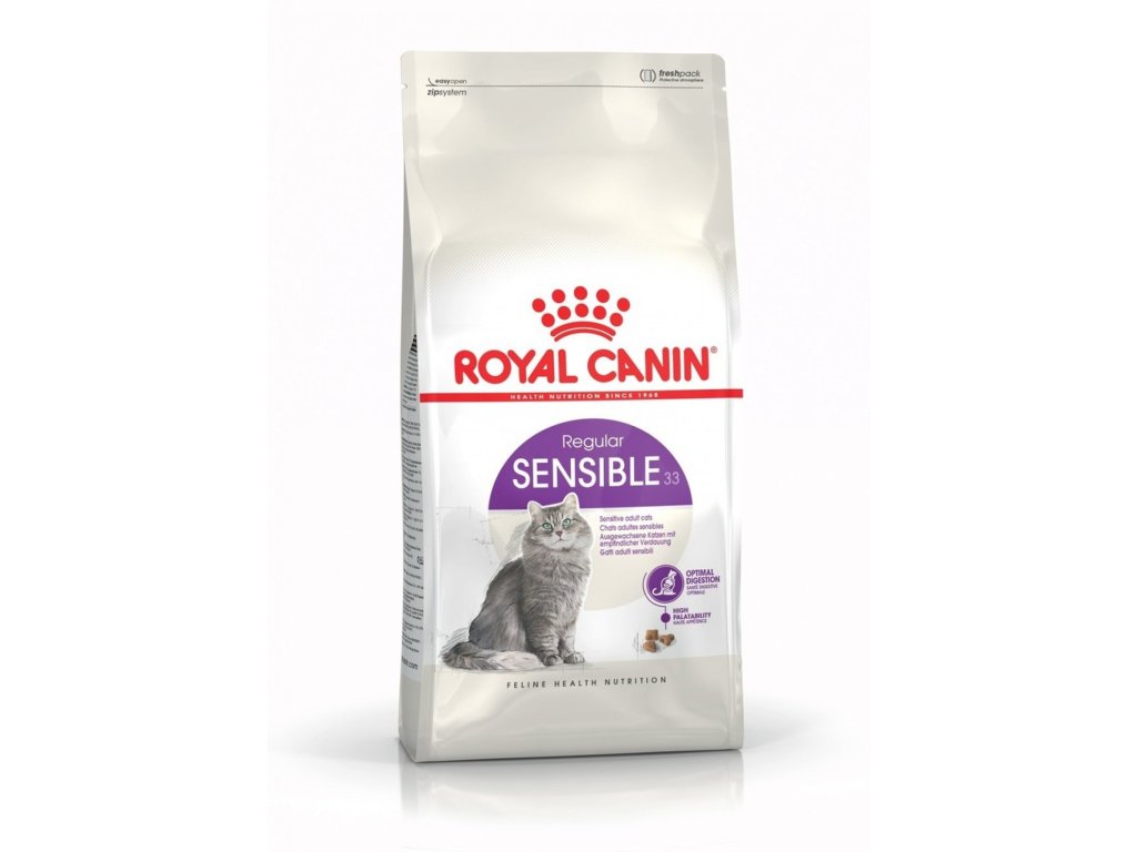 Royal Canin Sensible je superprémiové kompletní krmivo vyvinuté speciálně pro dospělé kočky od 1 roku věku, které mají problémy s citlivým trávícím ústrojím. Tyto lahodné granule s pestrou a zároveň šetrnou recepturou obsahují všechny důležité živiny, které váš kočičí miláček potřebuje, a postarají se o jeho celkové zdraví i perfektní vzhled.