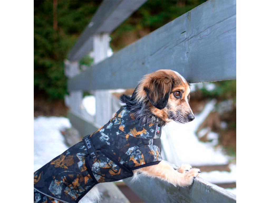 Vnější softshellová vrstva má membránu pro super odolnost proti větru a vodě (vodní sloupec 3000mm). Vnitřní strana je měkká a porézní s fleecovou úpravou, proto skvěle izoluje. Díky měkké fleecové úpravě vnitřní strany je obleček pro psy pohodlný a zároveň udržuje vyrovnanou teplotu.